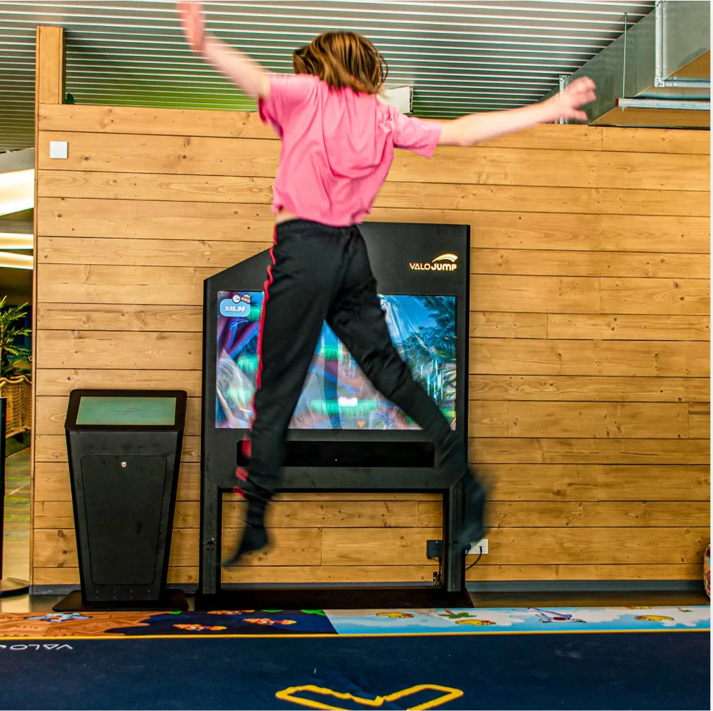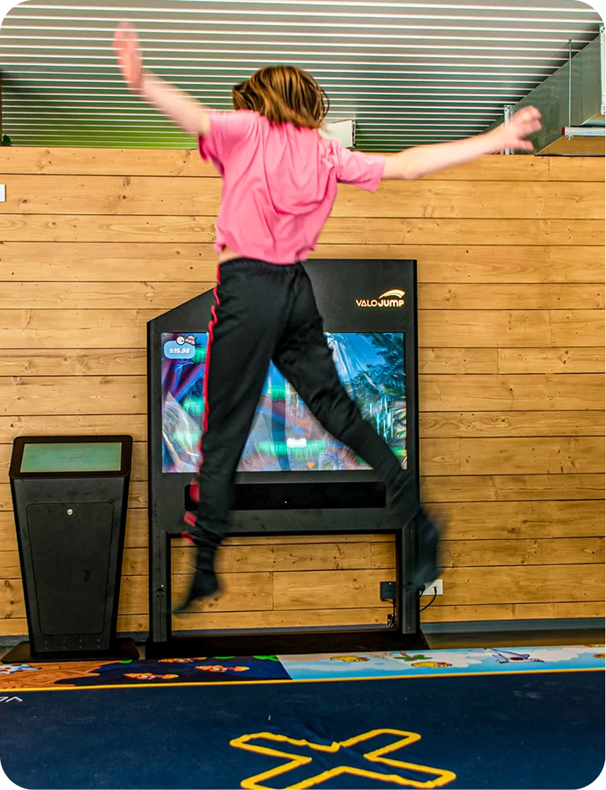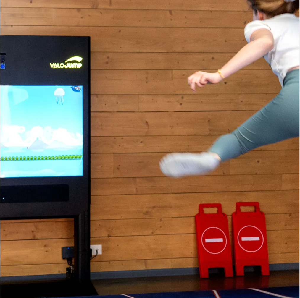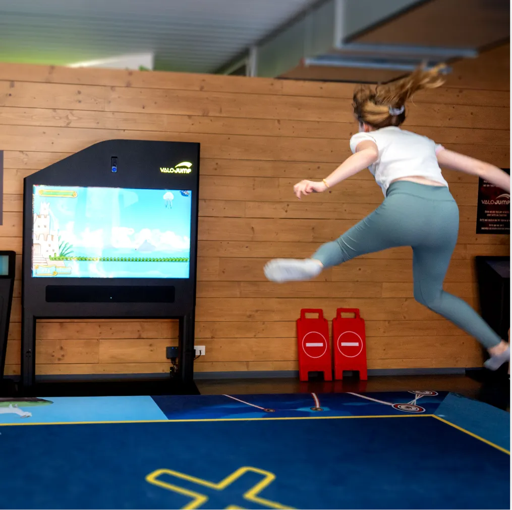 ValoJump verbindet körperliche Bewegung mit digitalen Gaming und macht euch selbst zur Spielfigur auf dem Bildschirm. Zuschauer fiebern genauso mit wie Spieler – denn jede Beweg